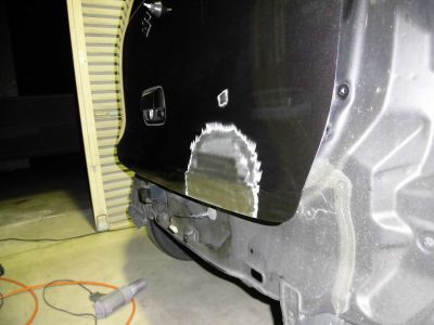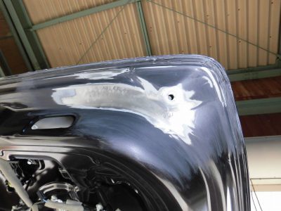 ▼リアバンパーも同様に、傷は削り落とし、内側からも修復します。