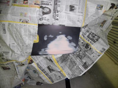 周囲に色が飛ばないようにマスキング(ビニールなどで覆う作業)をします。
