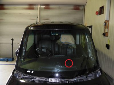 走行中に何かが飛んで来てフロントガラスにヒビが出来てしまい、しばらくそのままで放置していたそうですが、ひび割れが少しずつ大きくなって来たので、当社にご相談にお越しになられました。
