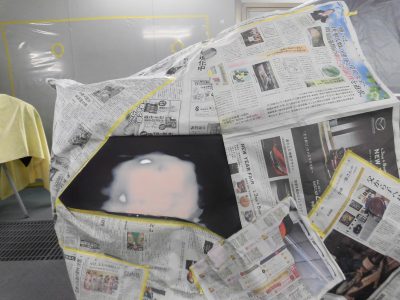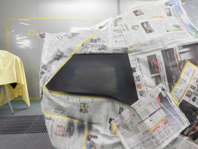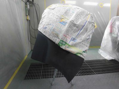 塗料がかかっていけない部分はマスキング(養生)をします。