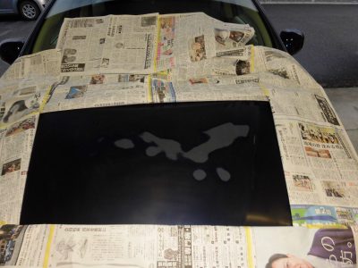 ▼次に周囲をマスキング(新聞紙などで覆い)し下地剤を塗布する為に、足付けを行います。