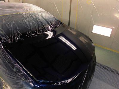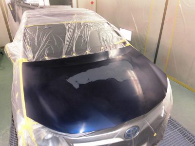 ▼塗装前の準備として塗装面の脱脂作業(掃除)とマスキングをします。