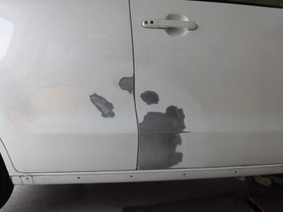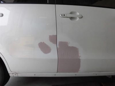 ▼板金で取きれなった凹みをパテで埋めます。